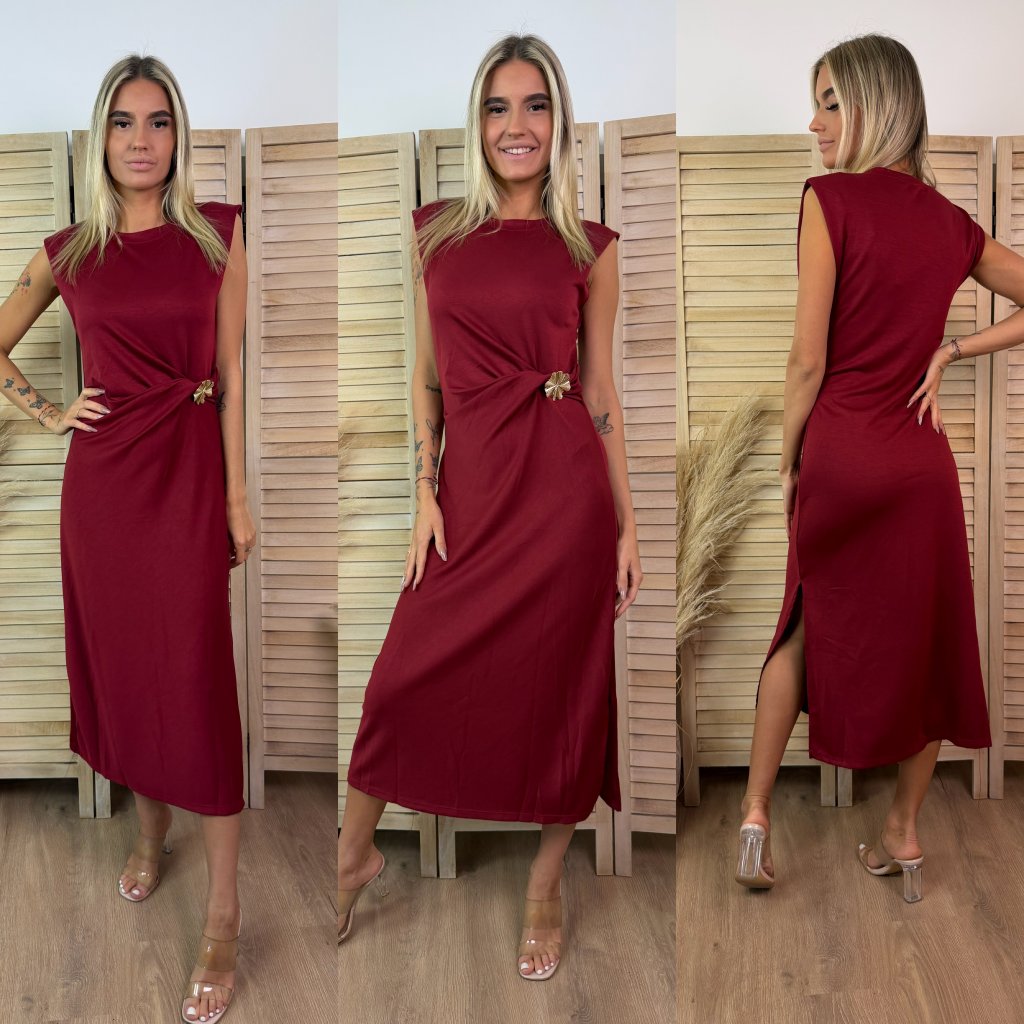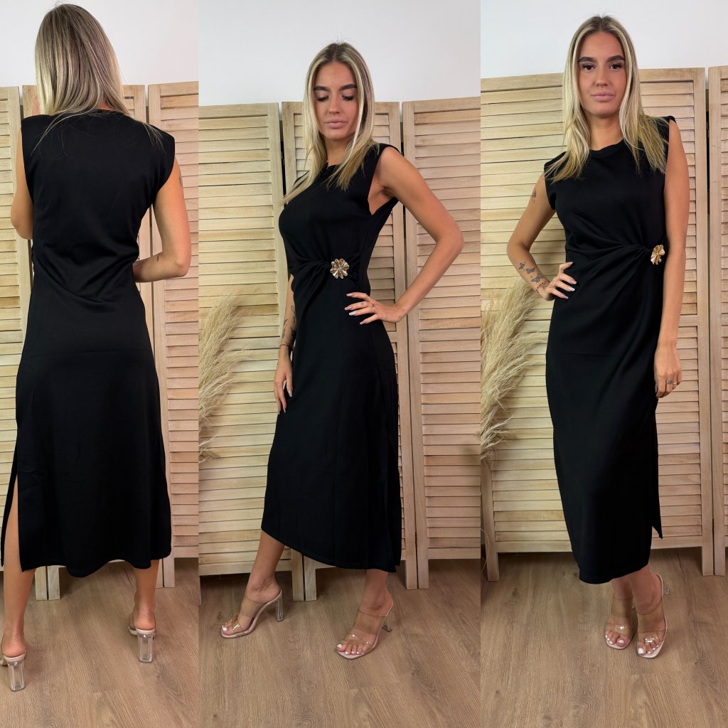 Materiál: 35 % Polyester ,65 % Viskóza.Míry: Prsa 40 cm – 45 cm, délka 123 cm, Pas 35 cm.Modelka měří 170 cm.