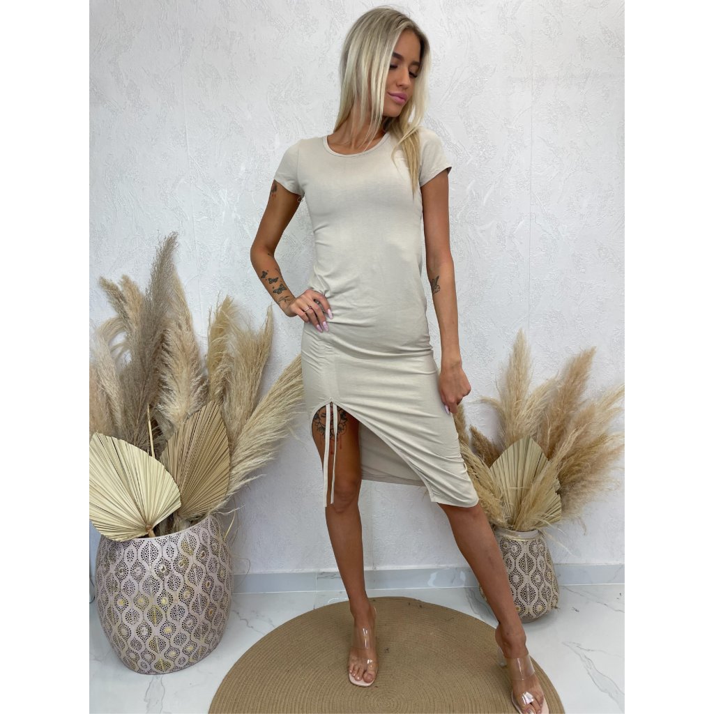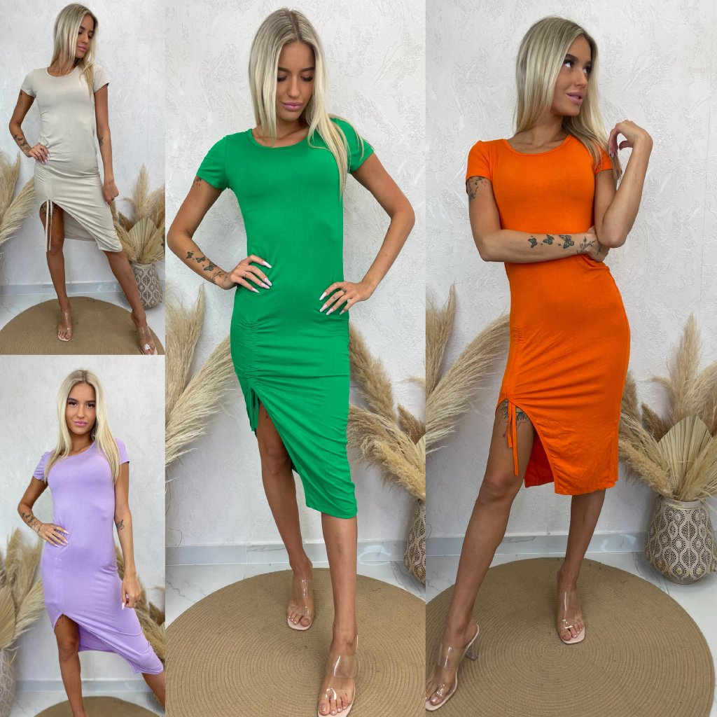 Materiál: 90% bavlna, 10% elastanVyužití: módníMíry: prsa 36 cm - 46 cm, boky 42 cm - 50 cm, délka k rozparku 77 cm, celková délka 112 cmModelka měří 170 cm.