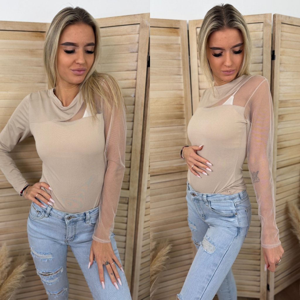 Materiál: 95 % Polyester ,5 % Spandex.Míry: Prsa 36 cm - 42 cm, délka 60 cm , délka rukávu 60 cm. Modelka měří 170 cm.
